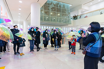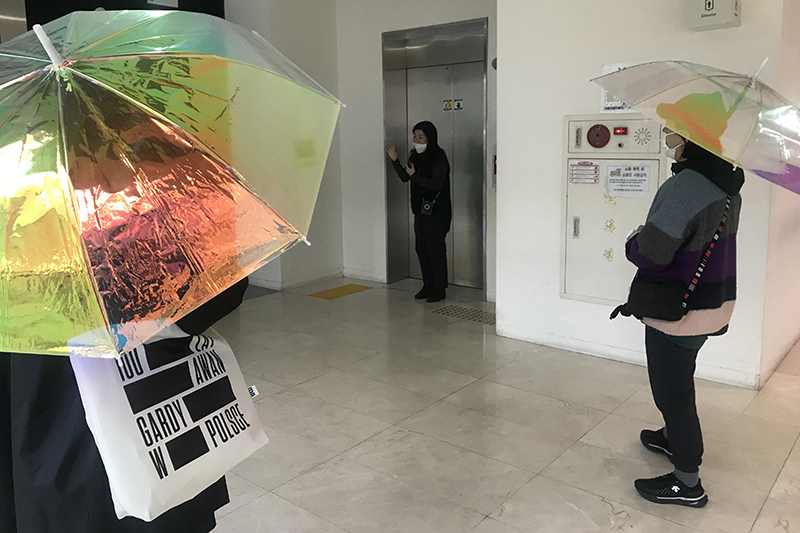 While the performer gives docent tour, viewers can explore the museum together with Iridescent colored umbrellas.Script: Bona Park, Performer: An Kon Nim, Kang Woo Jung / photos (some above): Hong Chulki