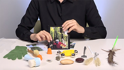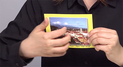 여행지에 산 엽서를 간질이거나 쓰다듬으며, 현실과 허구 사이의 나라를 방문한 여행기를 들려주는 퍼포먼스.