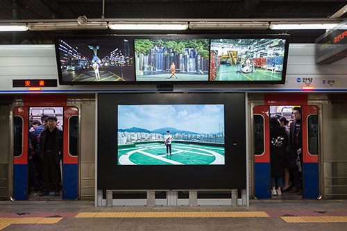 Paradise City, 4 channel version edited as the 1 minute duration version, Installed at the tube platform in Anyang station, 2016, photographed by Jungwon Kim