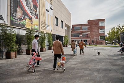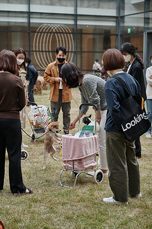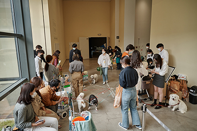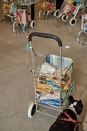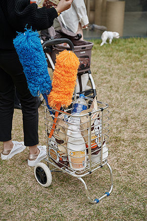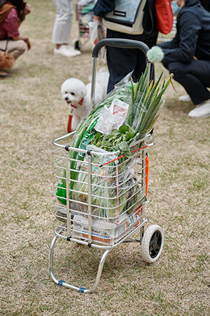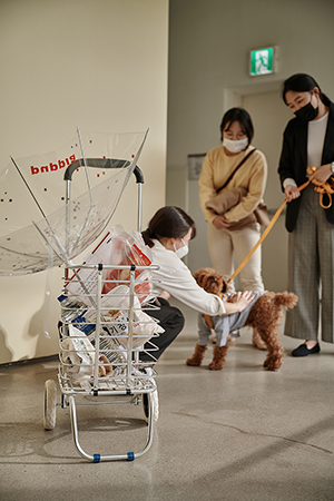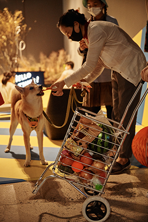 Performance with the museum staffs living with pets. After surveying dinner habits of the staffs and their pets, I shopped groceries and gave them the stuffs in shopping carts. During the performance, they meet audiences while carrying the carts. After the event, they could bring home the groceries and prepared dinner for themselves and their pets..The title of the work is a parody of Marcel Duchamp’s work La boîte-en-valise.