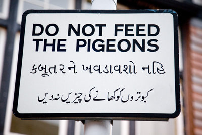Warning in Urdu (do not feed the pigeons), silk screen, 150 cm x 200 cm, 2008